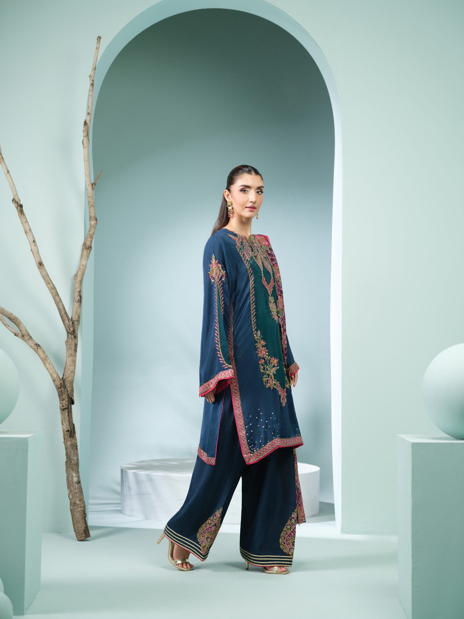 Lightweight yet luxurious, this outfit is perfect for Eid gatherings, festive dinners, and celebratory occasions where elegance is essential.